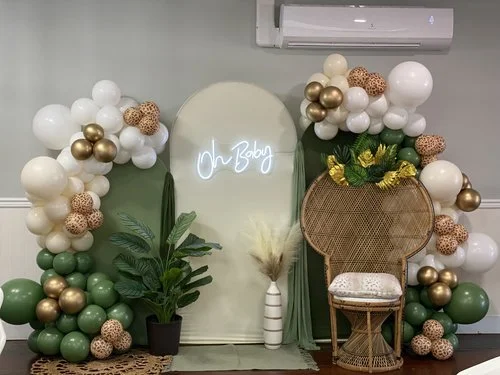 Arch's with organic balloon garland plus decor