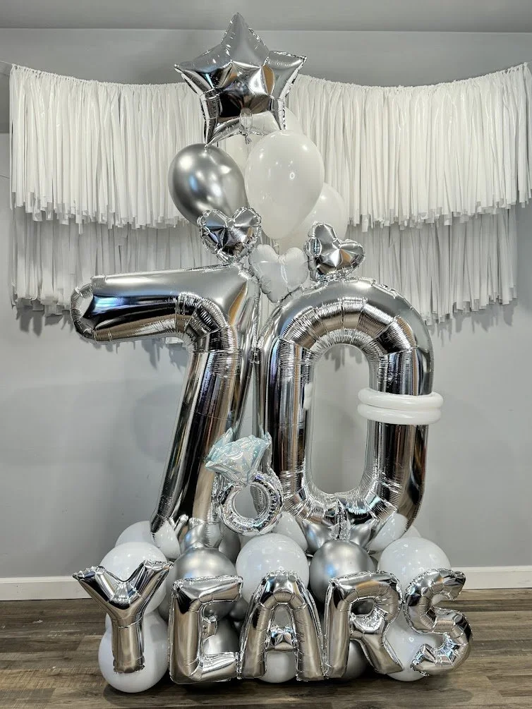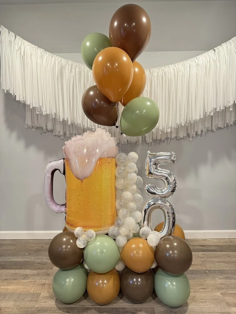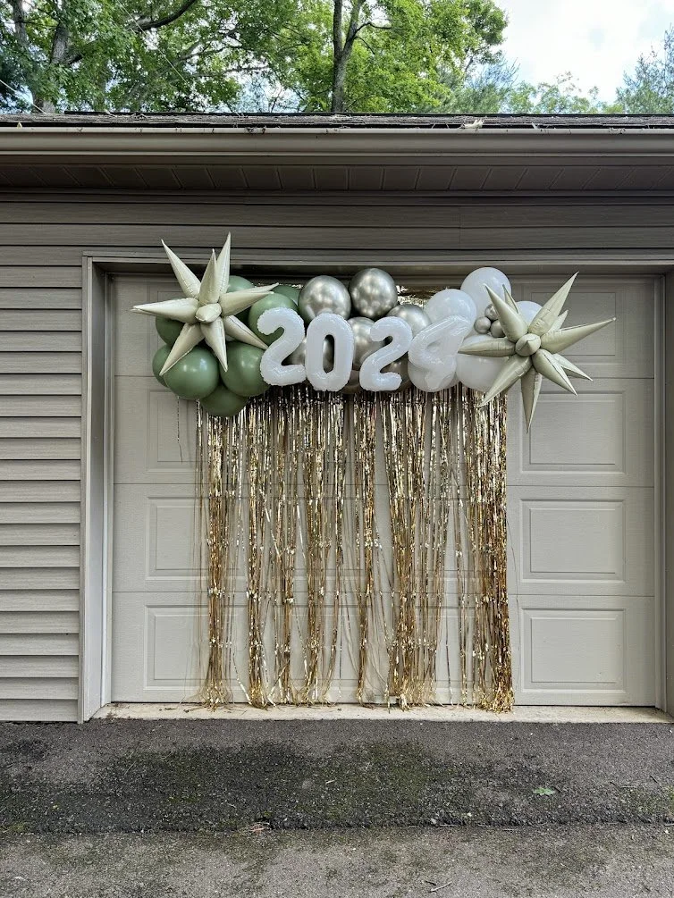 4 Foot garland, both 11” and 5” balloons. up to 2 -14” foil balloons & shimmer garland
