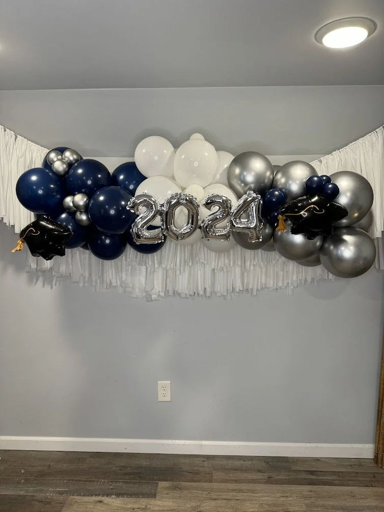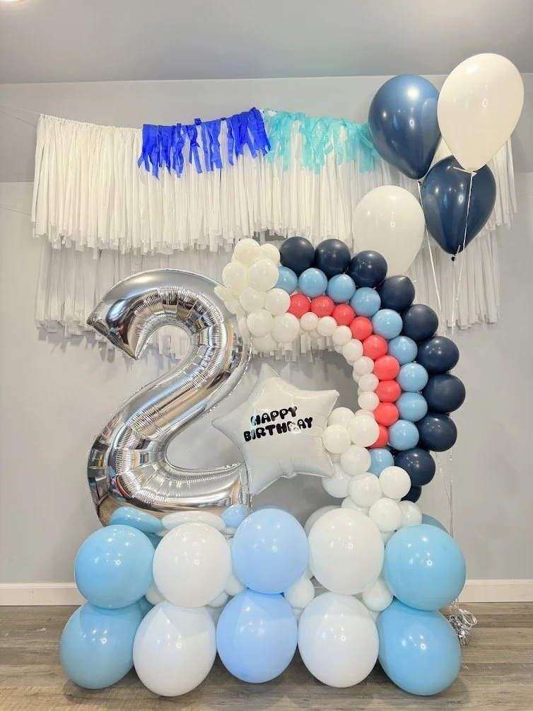 Choose up to three colors for ballons. choose color of shimmer garland. choose 2 specialty foil balloons. Additional foil or specialty balloons TBD.